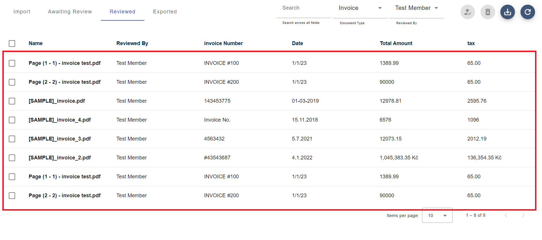 - Auto Review:If configured for auto review, and the document meets the required confidence score and passes all validation checks, DocAcquire will automatically mark it as Reviewed. The extracted data will then be available for direct access via APIs.